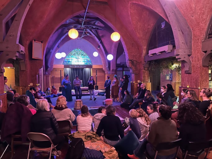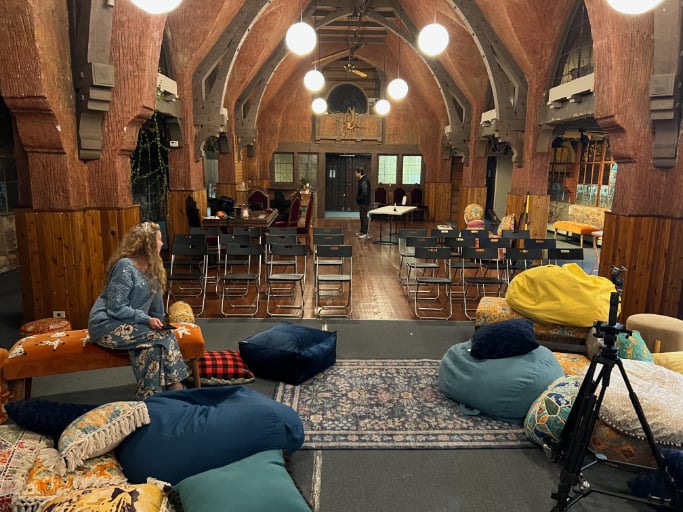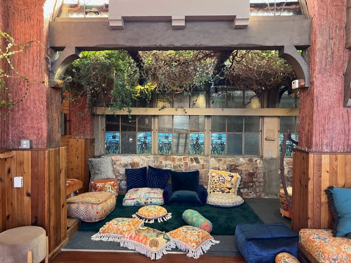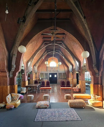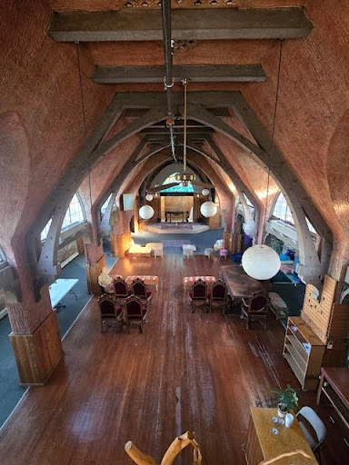 Originally built in 1924, this chapel has served multiple purposes over the decades. First the Hull family set up the Little Chapel of the Flowers which did funerals and also weddings. Then in 1976, it became home to Marmot Mountain Works, which sold outdoor goods in here until 2012. Then Trackers Bay Area, an adventure camp outfit for kids was in here until 2018 when they decamped. On the corner, Flaco's Tacos was a beloved staple in the community before the Ashby Eatery which is there today. The chapel, the corner restaurant, and the spaces in between continue as a gathering place for spiritual, cultural, and artistic endeavors.